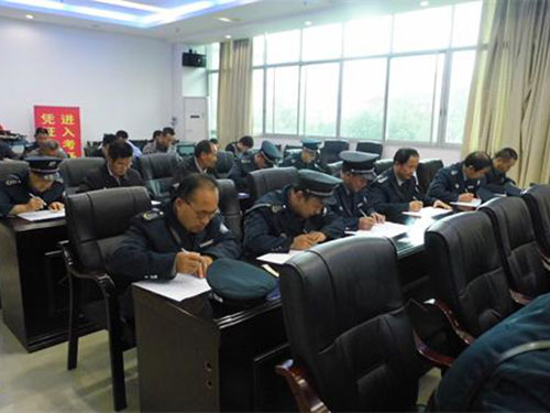 “保安員證”考試中,隊員正在聚精會神參加筆試